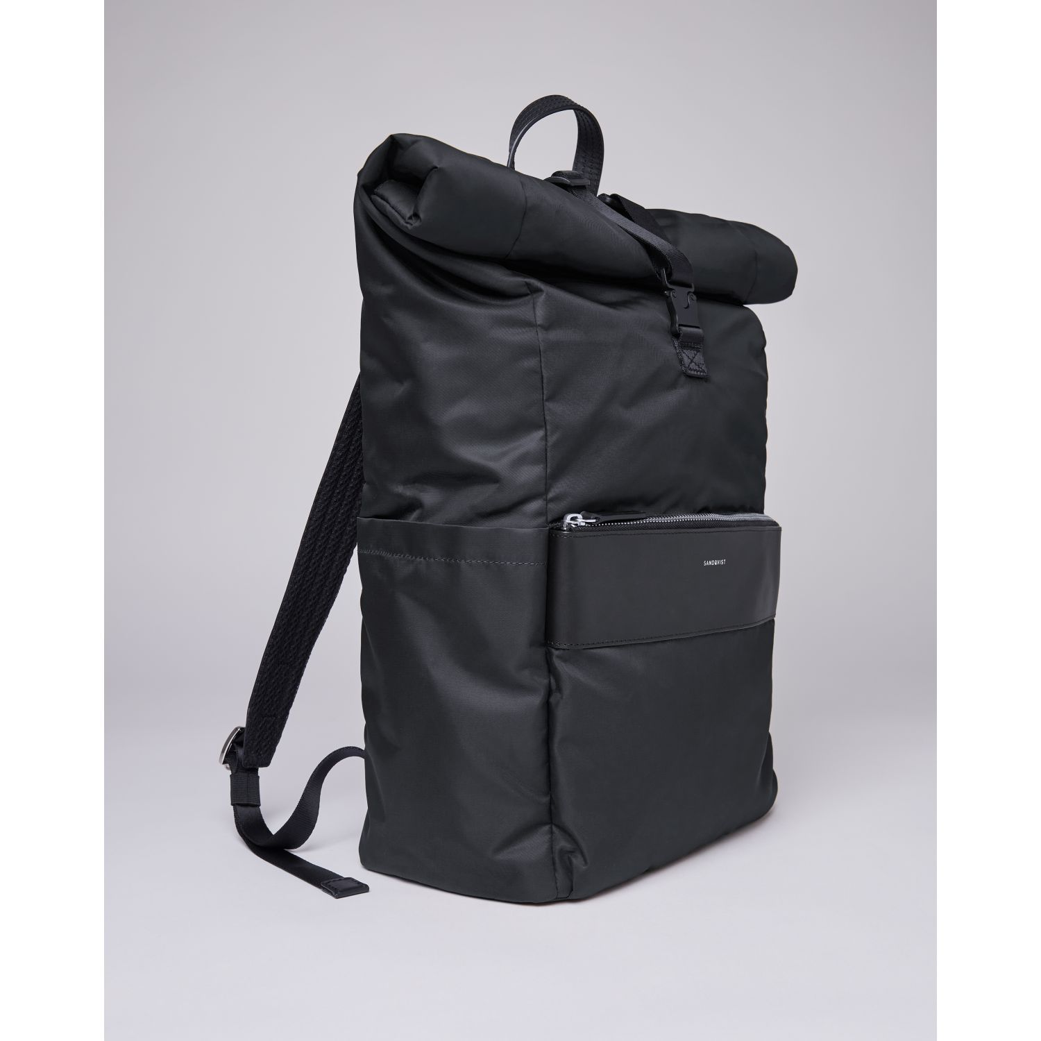 This modern rolltop backpack from our Everyday series is made with recycled nylon and high-quality leather details. Zipper and front metal hook closure with an adjustable strap. It can carry up to 25 L and the external laptop compartment fits most 13" models. The outer front pocket allows for easy access to frequently used items. Functionality combined with sophisticated design make this the perfect everyday bag for work as well as leisure.