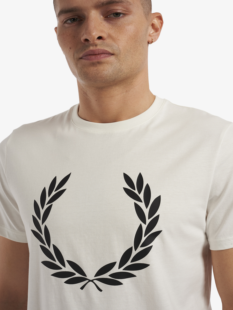 A crew neck t-shirt in cotton jersey, designed with a flock Laurel Wreath in pride of place.