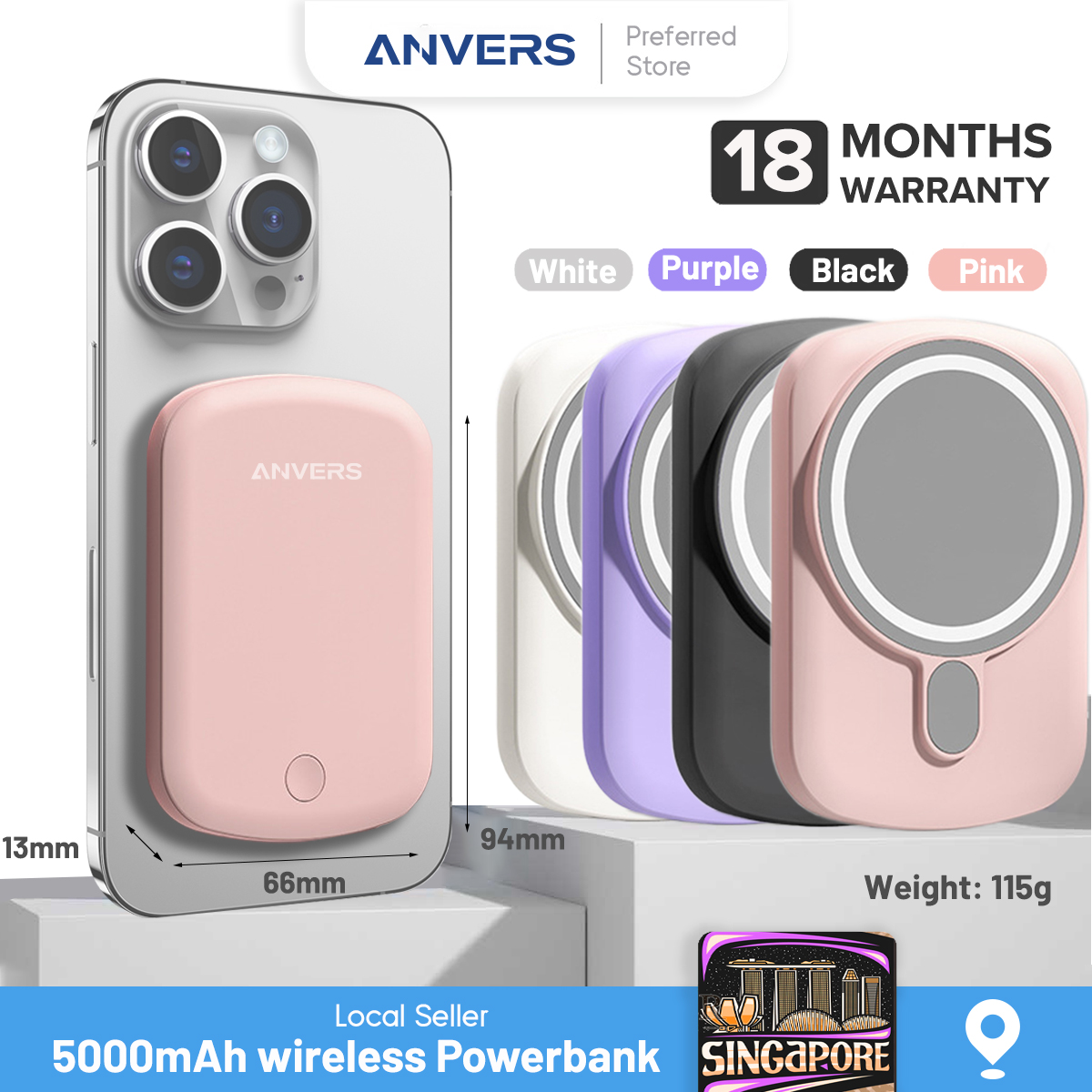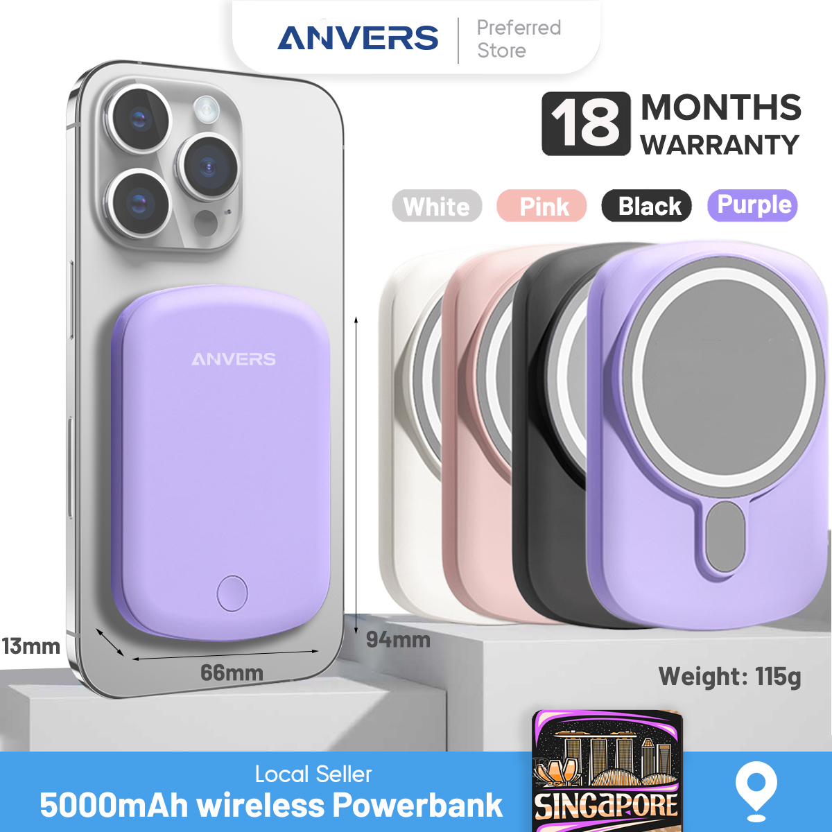 Anvers Magsafe Power Bank Wireless Magnetic Fast Charging Battery Pack Protable Charger for iPhone 16/15/14/13/12