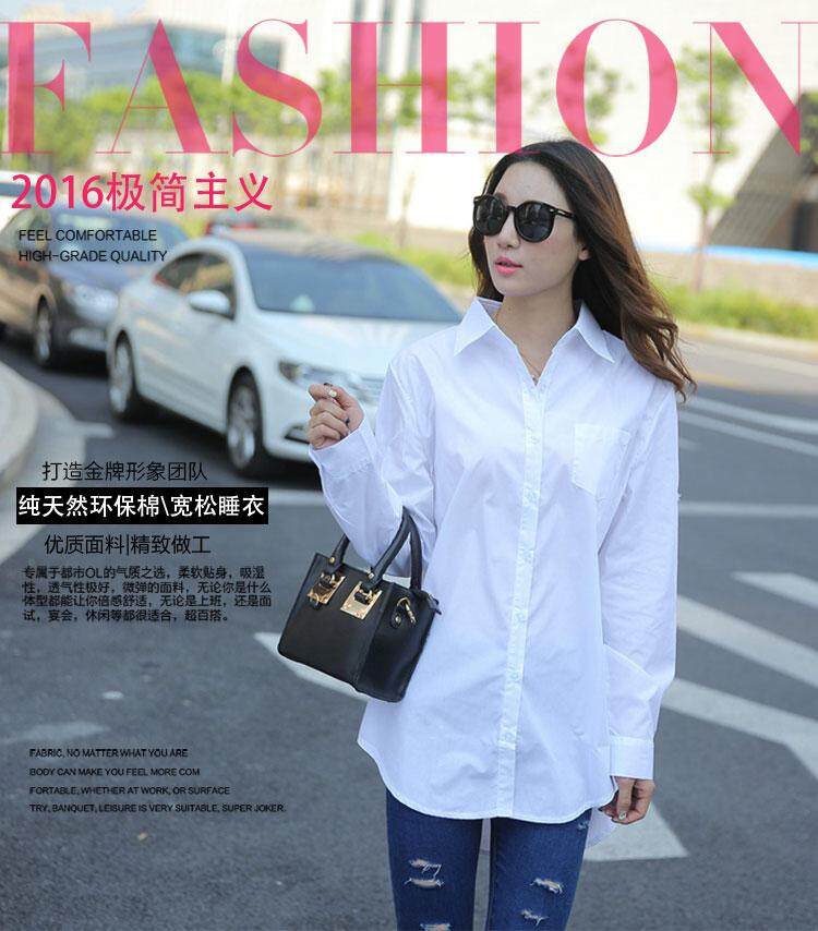 Autumn Spring Women Long White Shirts All-match Good Quality Long Sleeve Lady Casual Cotton Blouse Tops