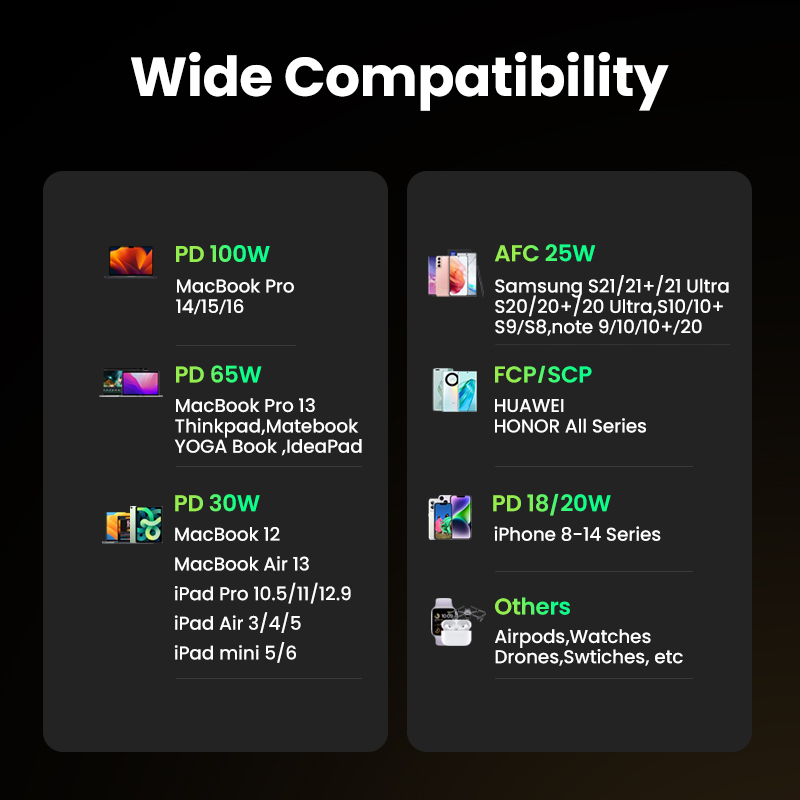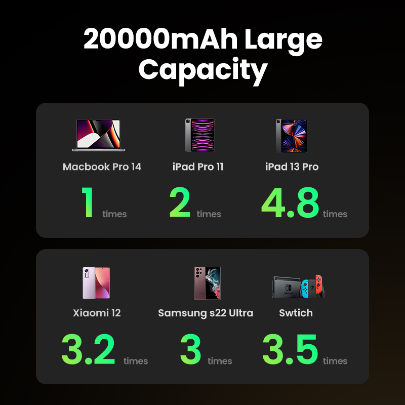 UGREEN 20000mAh Laptop Power Bank PD 100W Fast Charging for Dell Lenovo MacBook Pro/MacBook Air M3 M2 M1 iPad Air M2 13" 2024 iPhone 16 15 14 Pro Max Samsung S24 Ultra Z Fold5 M14 Z Flip5 A35 A55 for