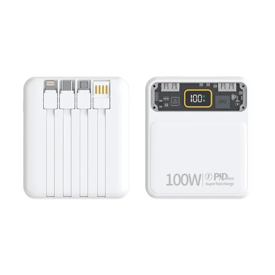 A minimum 20W PD adapter and fast charging cable is recommended for charging the power bank