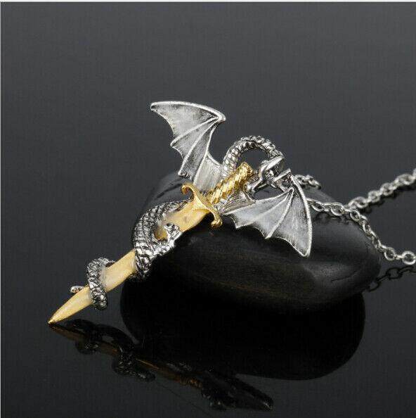 MeiYang Mens Silver Gold Stainless Steel Pendant Necklace Chain Punk Dragon Wing Size: 3.8*4.7cm