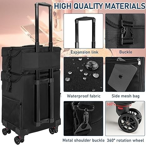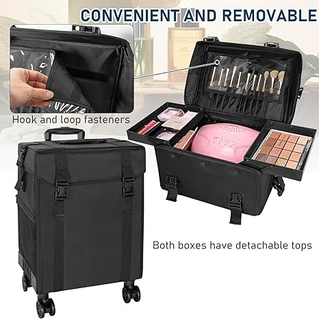 【Professional Rolling Makeup Case】The 2-in-1 Makeup Travel Case is designed for professional makeup artists, nail technicians and hair barbers/stylists.