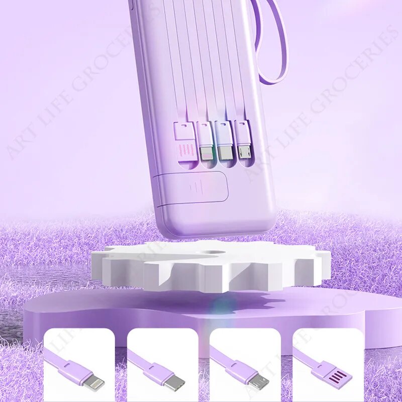- ?With Built in 4 Cables: USB Charging Cable, Type-C Charging Cable, Lightning Cable, Micro USB Cable