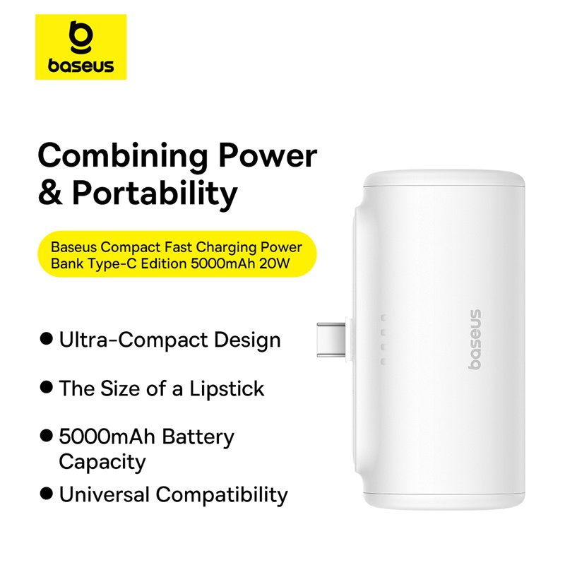 Baseus Fast Charging Power Bank with Built-in USB-C 5000mAh Portable Charger 20W for iPhone 15/15 Plus/15 Pro/15 Pro Max Sansung S22 and more