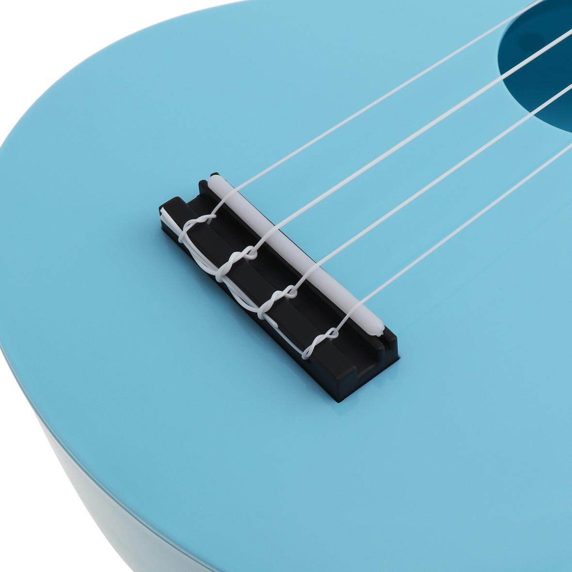 • Features:- 21 inch size, suitable for both kids and music beginner.- Color appearance, more able to attract the attention of children.- Made of plastic, durable.- Colloidal four strings, toughness, safety does not hurt the hand, each string can bring a different tone, to stimulate interest in learning.- Every ukulele sends a guitar picks.- Adjustable string design, different tightness can have different sounds.- Ideal for music beginner.