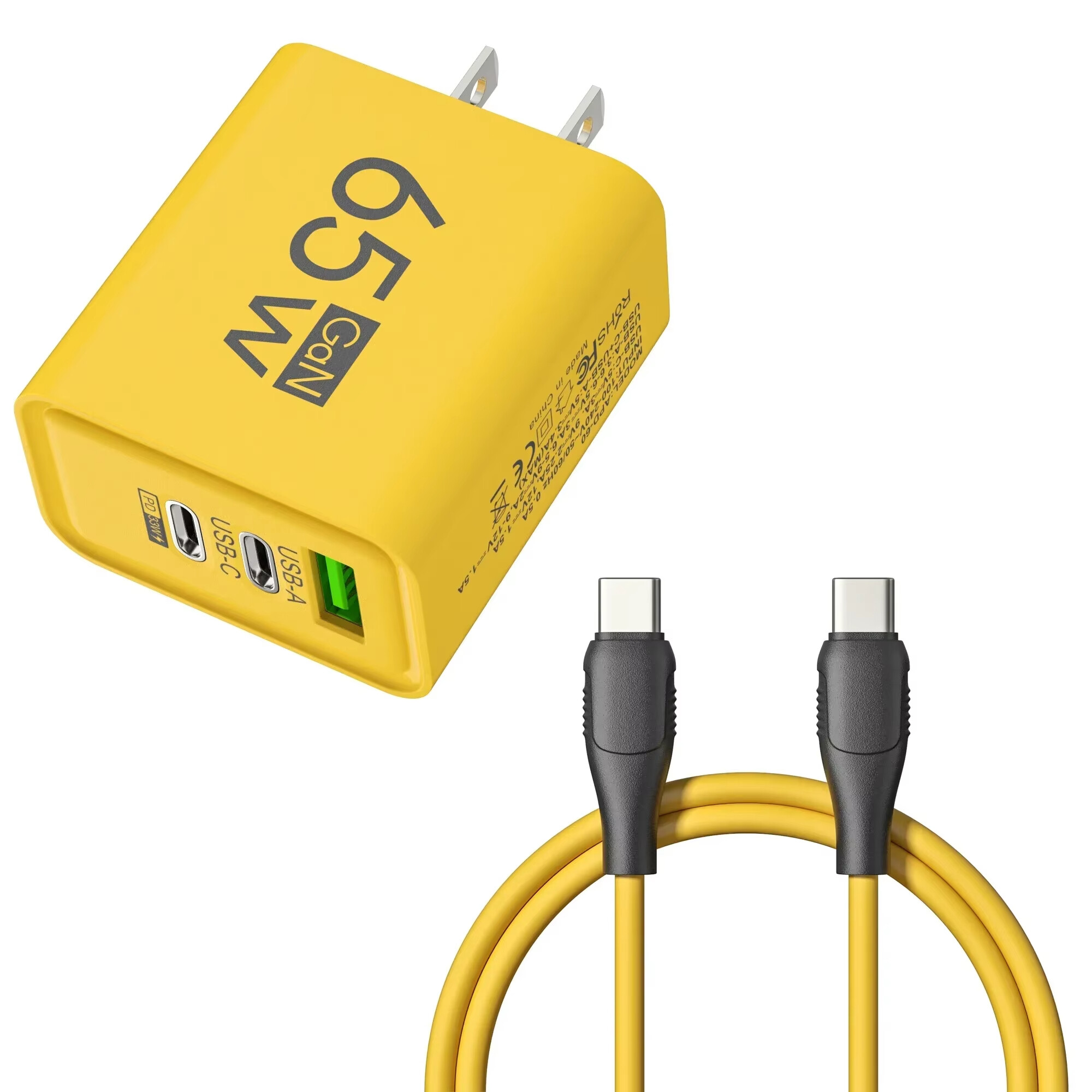 The 65W 3-port charger features a versatile charging solution with 1 USB a and 1 USB C port, as well as a PD 33W output, allowing you to easily charge multiple devices at the same time.