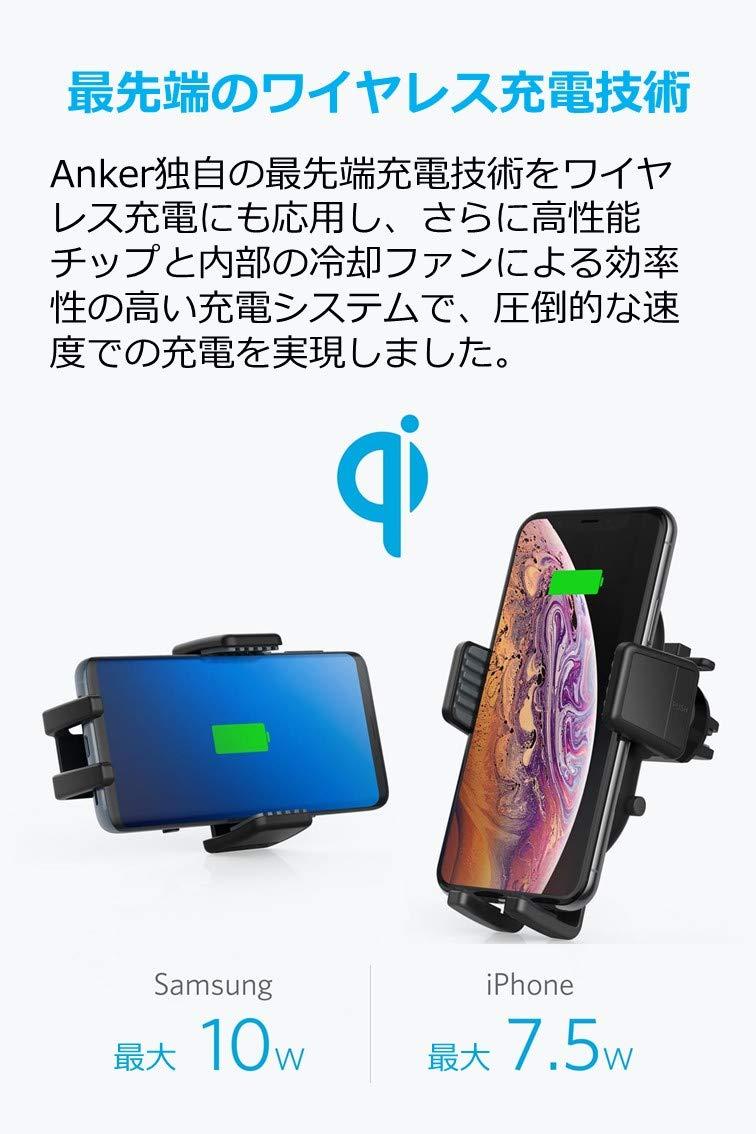 Anker PowerWave 7.5 Car Mount(10W Wireless Charger mount on Aircon Vent)【Qi Approved/360° turn/ fast charging】iPhone XS / XS Max / XR / X / 8 / 8 Plus、Galaxy S9 / S9+ / S8 / S8+、 LG G7、Other Qi Suppor