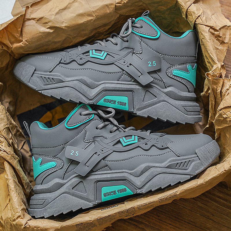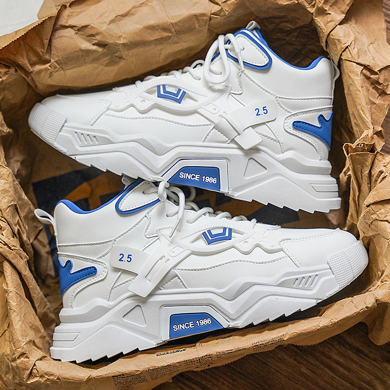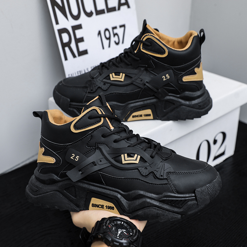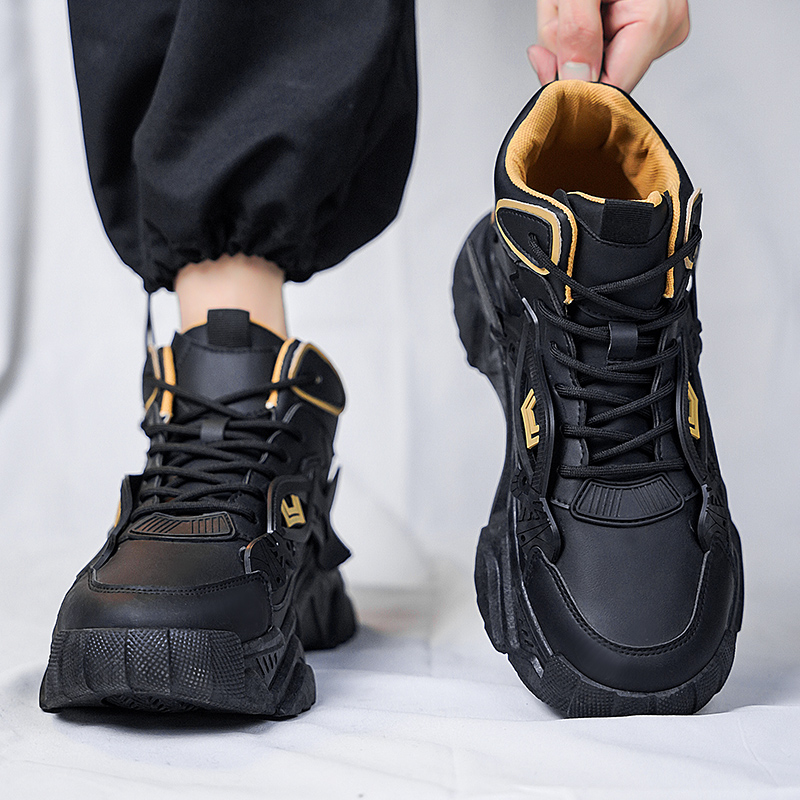 【READY STOCK】Men's high top sports shoes, outdoor casual board shoes, thick soled lace up training running shoes.