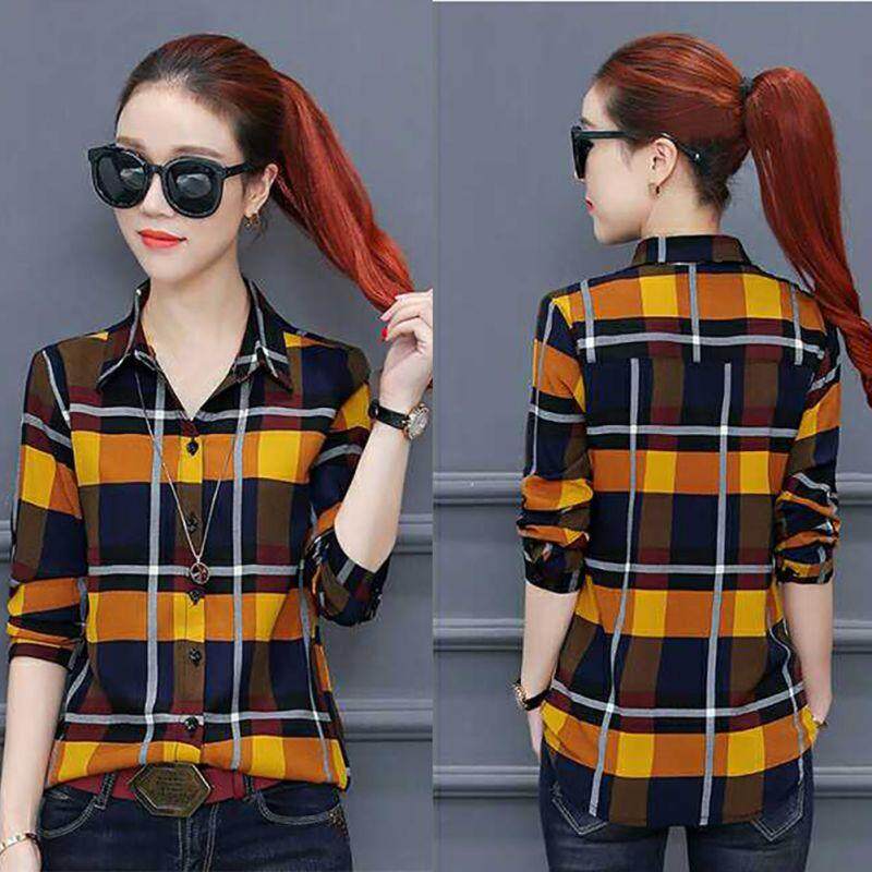 Korean Fashion Plaid Shirt Women New Long Sleeved Blouse