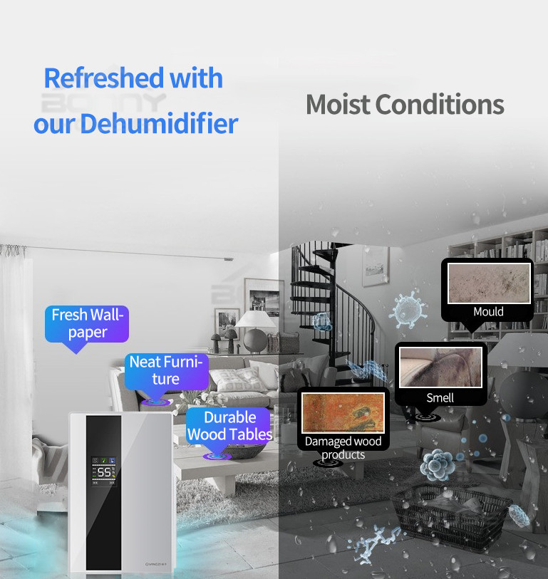 Dehumidifier Household Small Bedroom 90W Mute Energy-saving Mute UV Air Purify LED Display Mute Xiaomi Dehumidifier 3pin Adapter Plug