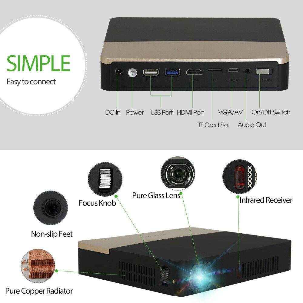 8500Lumens DLP Android HD 1080p Home Cinema 4K Real 3D Projector Can Zoom Auto Keystone Android Bluetooth 4.0 Wifi DVD HDMI USB SD