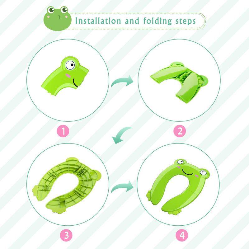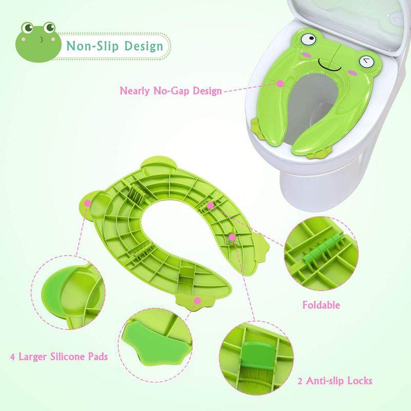 Cute frog shaped travel potty seat brings more fun to kids potty training time, specially designed for kids of 1-6 years old. Hold your nervous little one safe on the frog and get you out of potty training nightmare