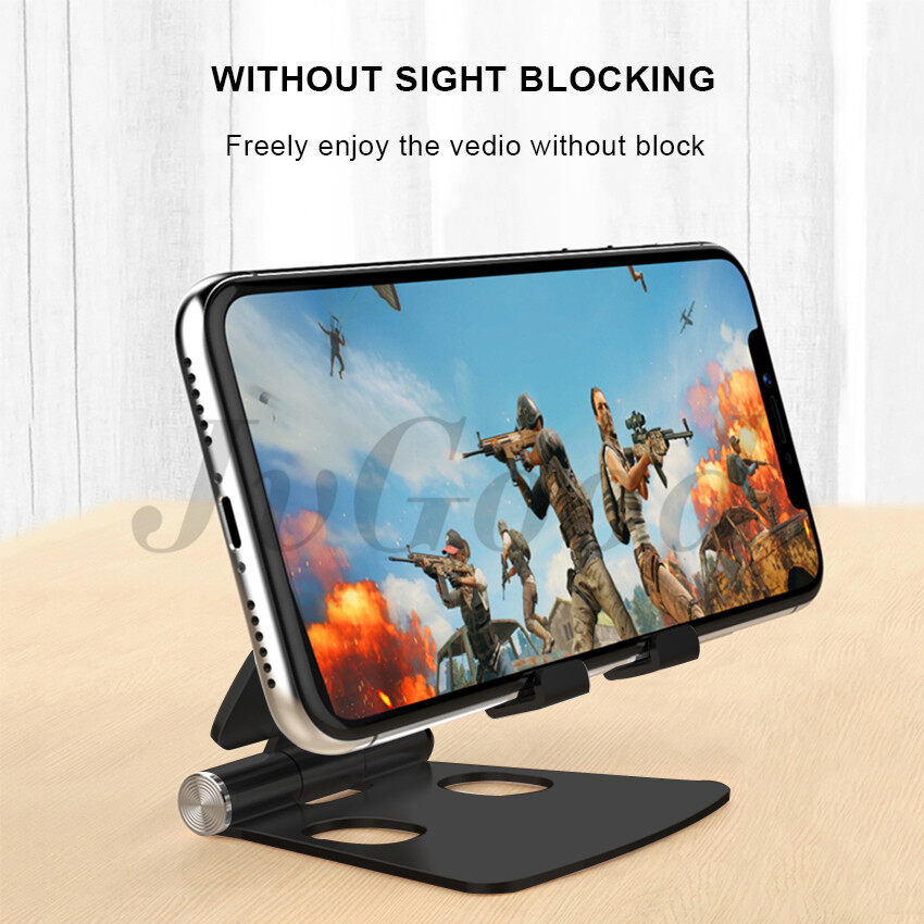 JvGood Adjustable Foldable Phone Holder Aluminum Desktop Support Portable Universal Desk Stand with Non-slip mat for Smart Phone Tablet Display with Non-slip mat