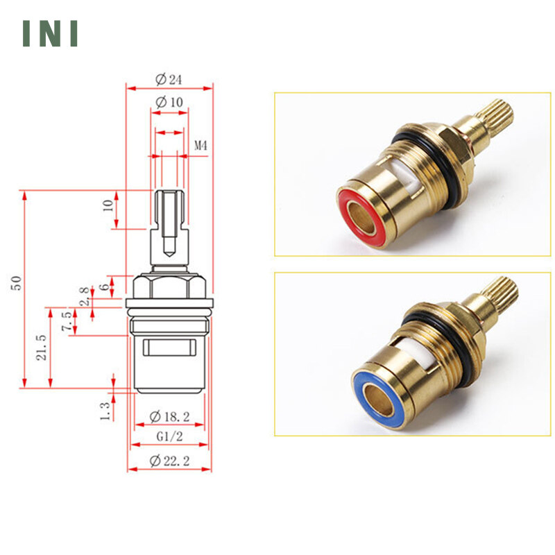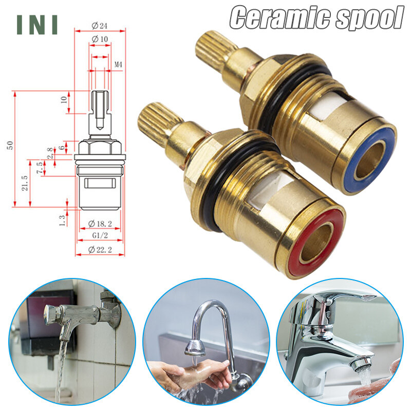 INI 2 Pcs Replacement Tap Valves Ceramic Disc Gland Brass 20 Teeth 1/2 Inch Accessories