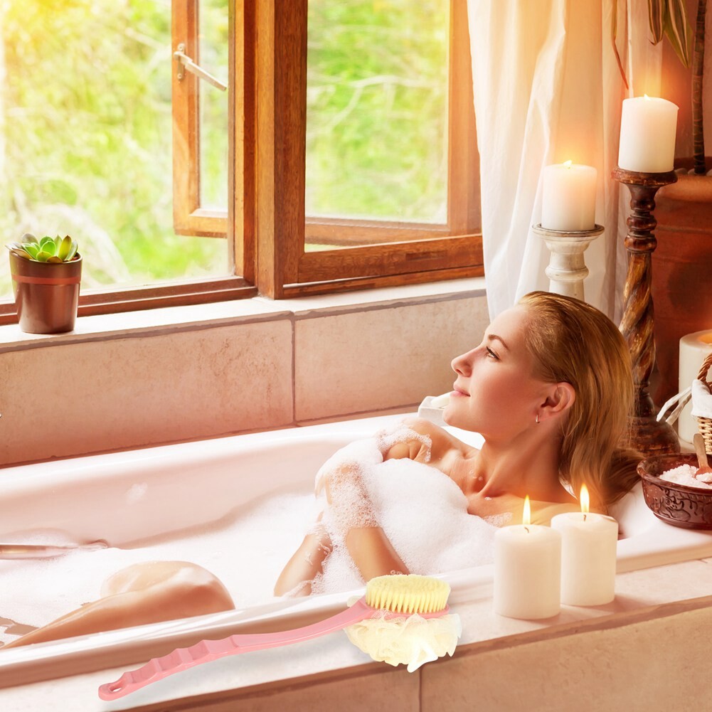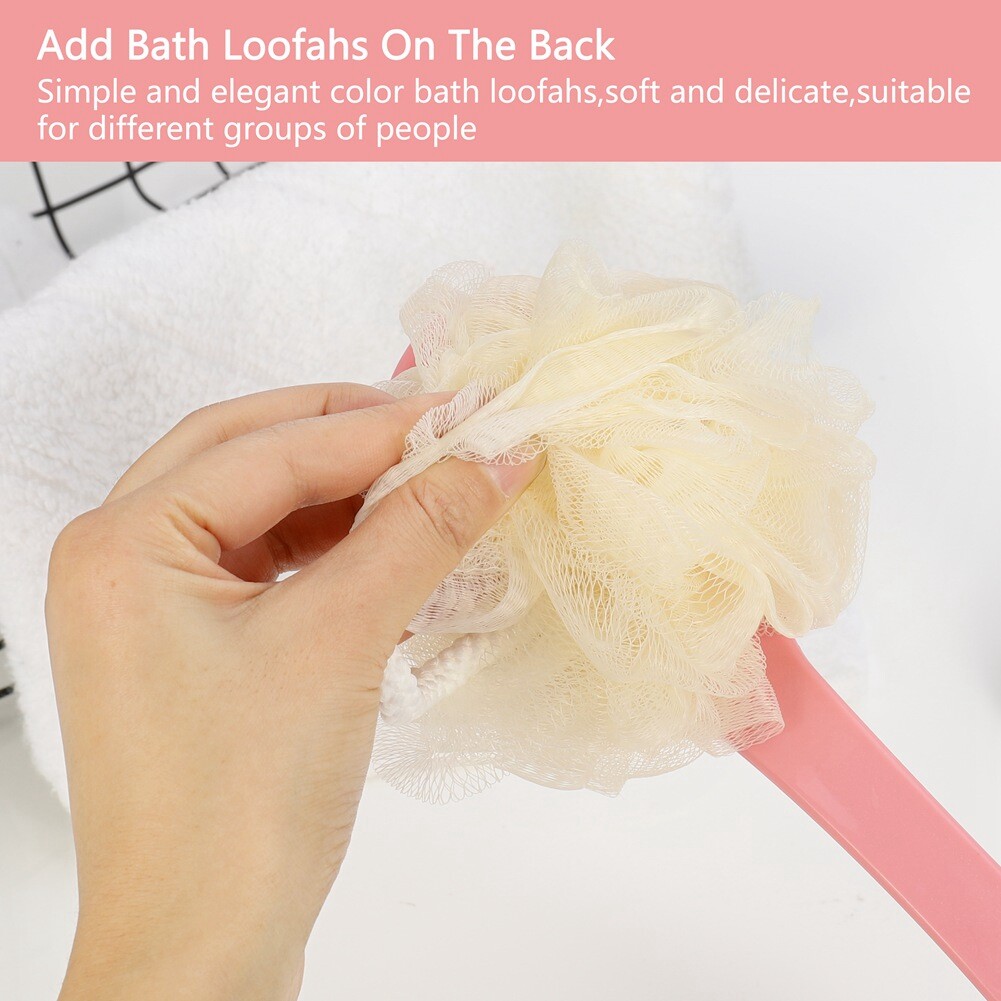 CYALLY MEE Long Handle Soft Hair Bath Brush Sunwuun Back Scrubber Body Brush Loofah Dry Brushing Body Brush With Handle For Shower With Loofah, 2-in-1 Multifunction Bath Brush Mesh Sponge With Curved