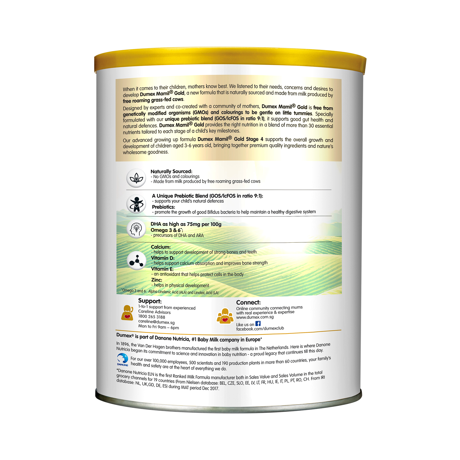 Dumex Mamil Gold Stage 4 Growing Up Kid Milk Formula (1.6kg) x 4 + Free 850g x 2