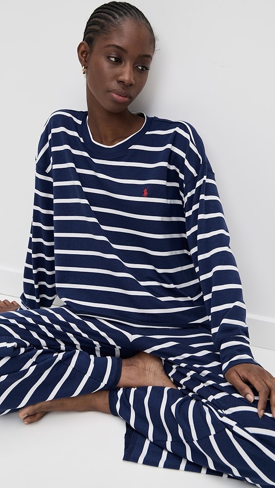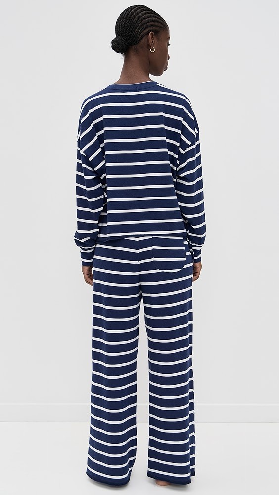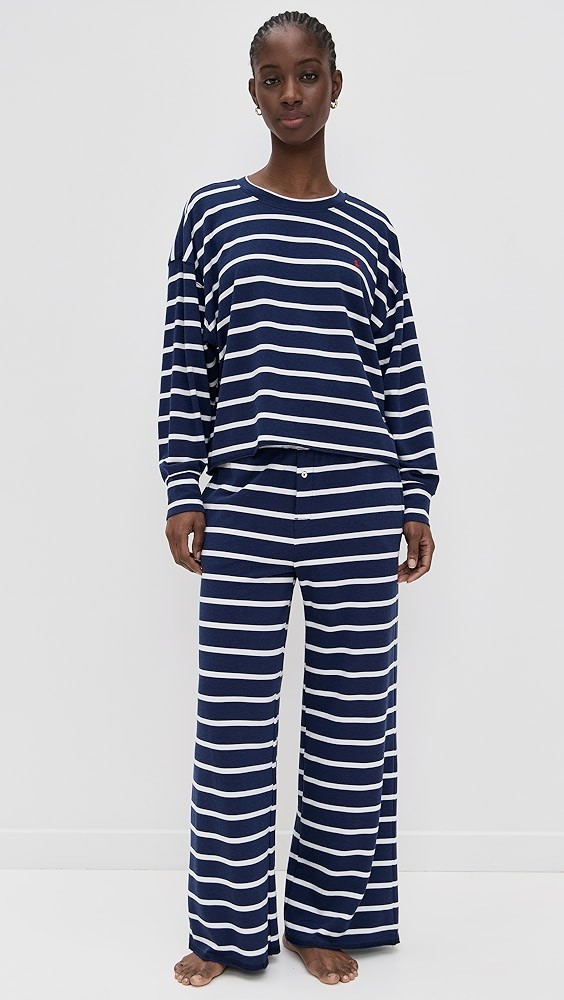 Crew Neck Wide Leg Pants Pajama Set