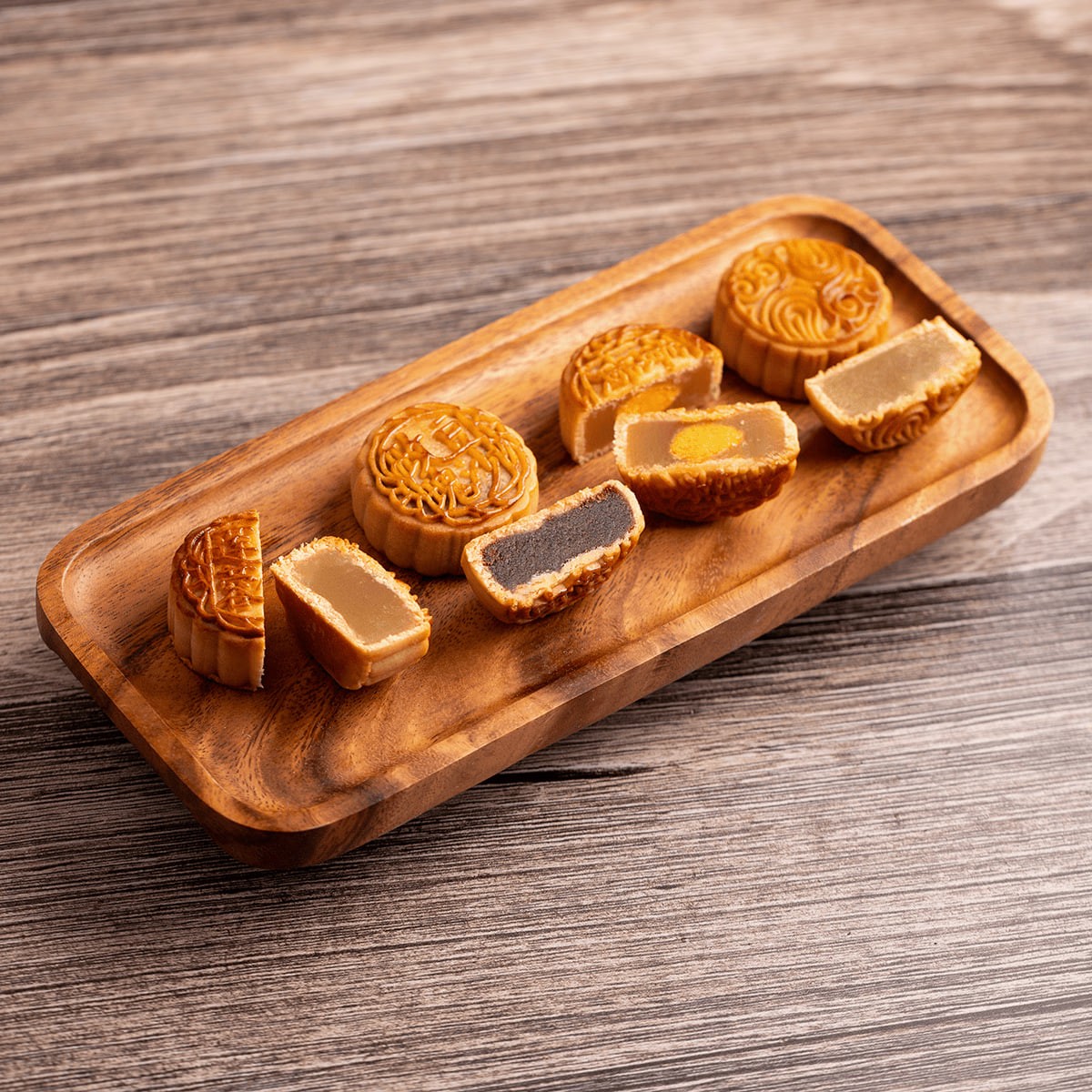 Mondkuchen aus weißer Lotussamenpaste mit doppeltem Eigelb