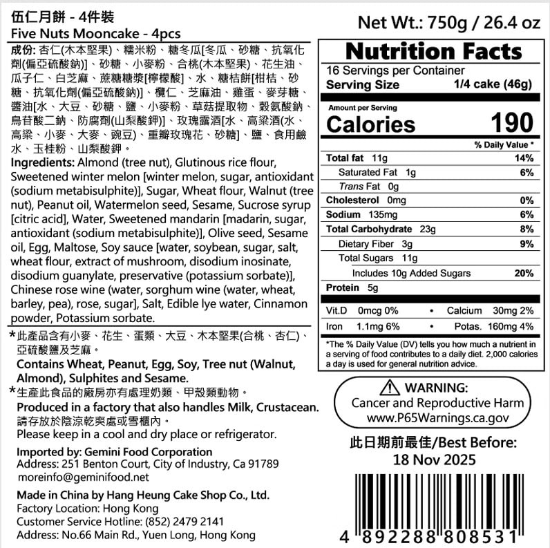 Hong Kong Hengxiang Low Sugar Double Yolk White Lotus Seed Paste Mooncake (4 pieces) [Time-honored Brand, Must-buy in Hong Kong]