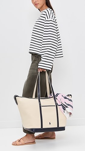 Leather Trim Canvas Large Shopper Tote