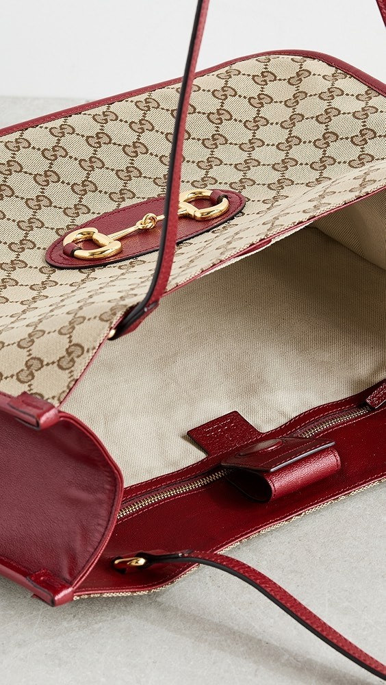 Signature gold-tone hardware at front