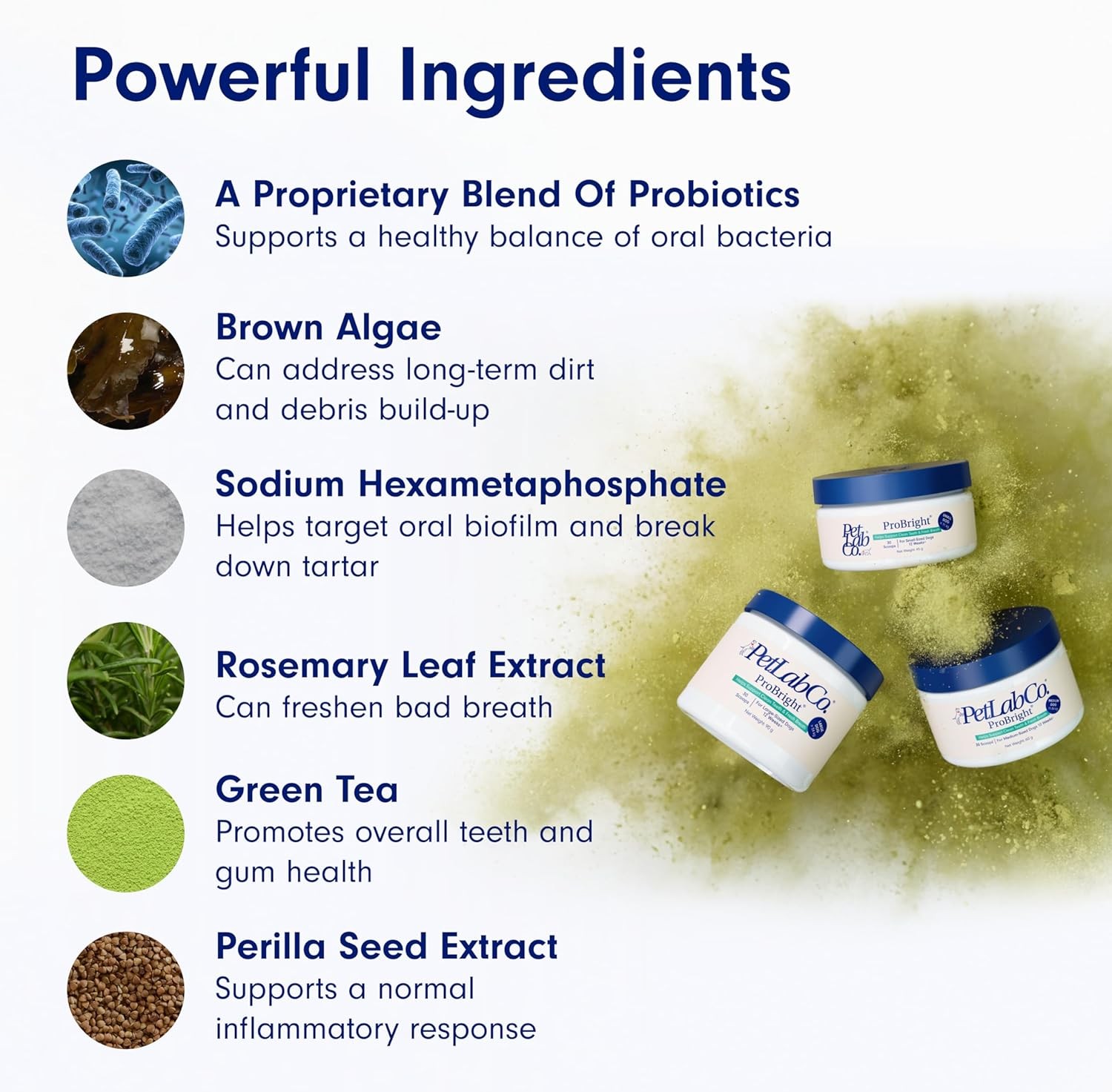 PetLab Co. ProBright Dental Powder - Dog Breath Freshener - Teeth Cleaning Made Easy – Targets Tartar & Bad Breath - Formulated for Small Dogs