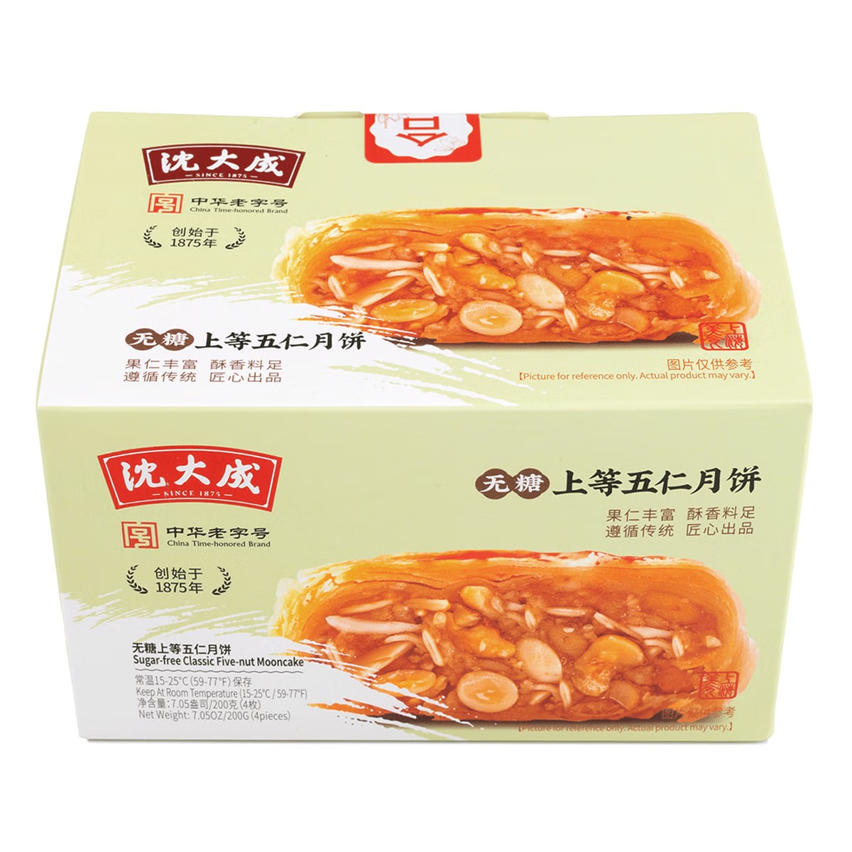 Shen Dacheng (Shanghai Time-Honored Brand) Su-Style Five-Nut Multi-Flavor Mooncakes, Sugar-Free, Fine Sand Shortbread, a Mid-Autumn Festival Shanghai Specialty, 4 pieces, 200g. Suitable for those with diabetes.