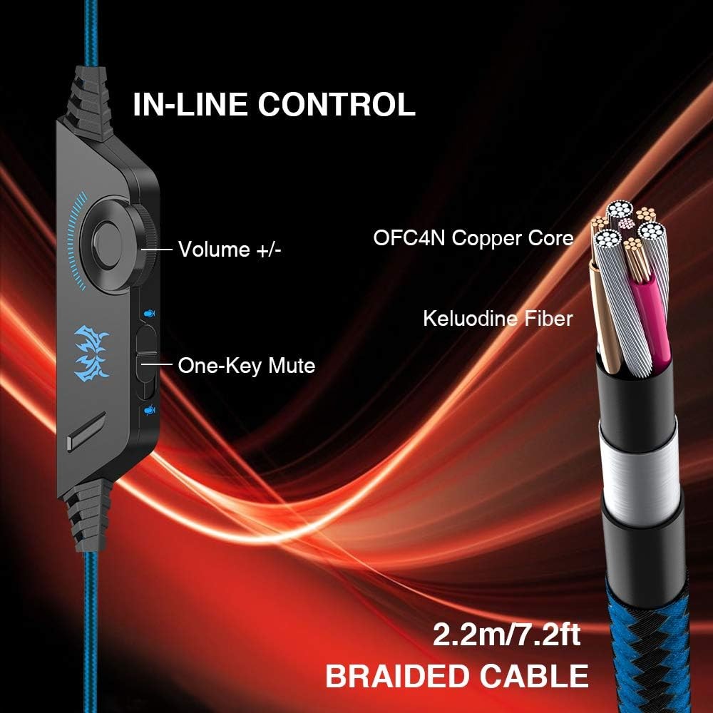 • 【IMMERSIVE GAMING EXPERIENCE】 Stunning LED lights designed on earcups quickly blasts the atmosphere of your game. High precision 50mm magnetic neodymium driver provides you vivid sound field, high quality stereo sound for game playing.